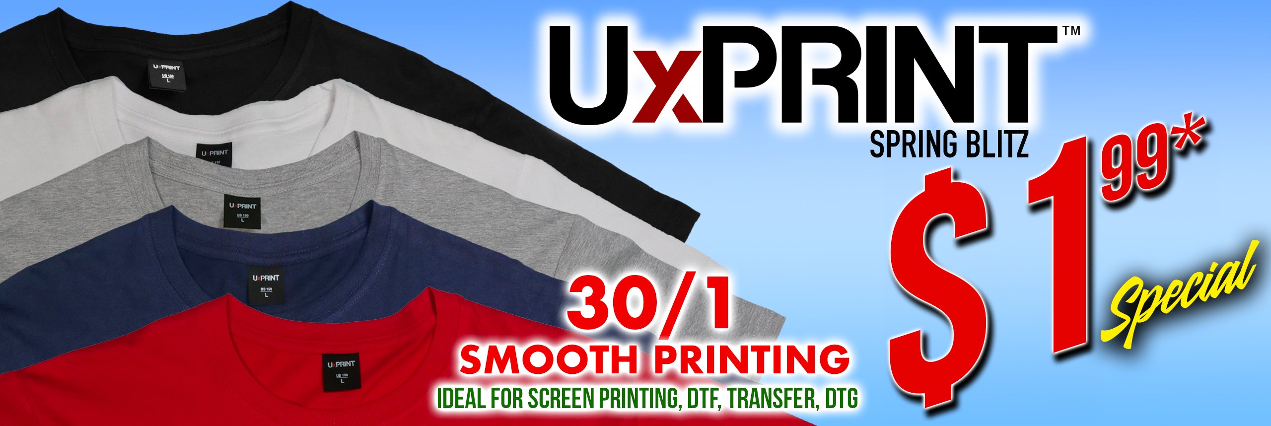 UxPRINT is changing the way the decorating industry thinks about promotional weight shirts. Our US150 series of garments look, feel, and print like a high quality 30/1 shirt giving you and your customer the BEST printing experience. An incredible shirt at incredible savings.
